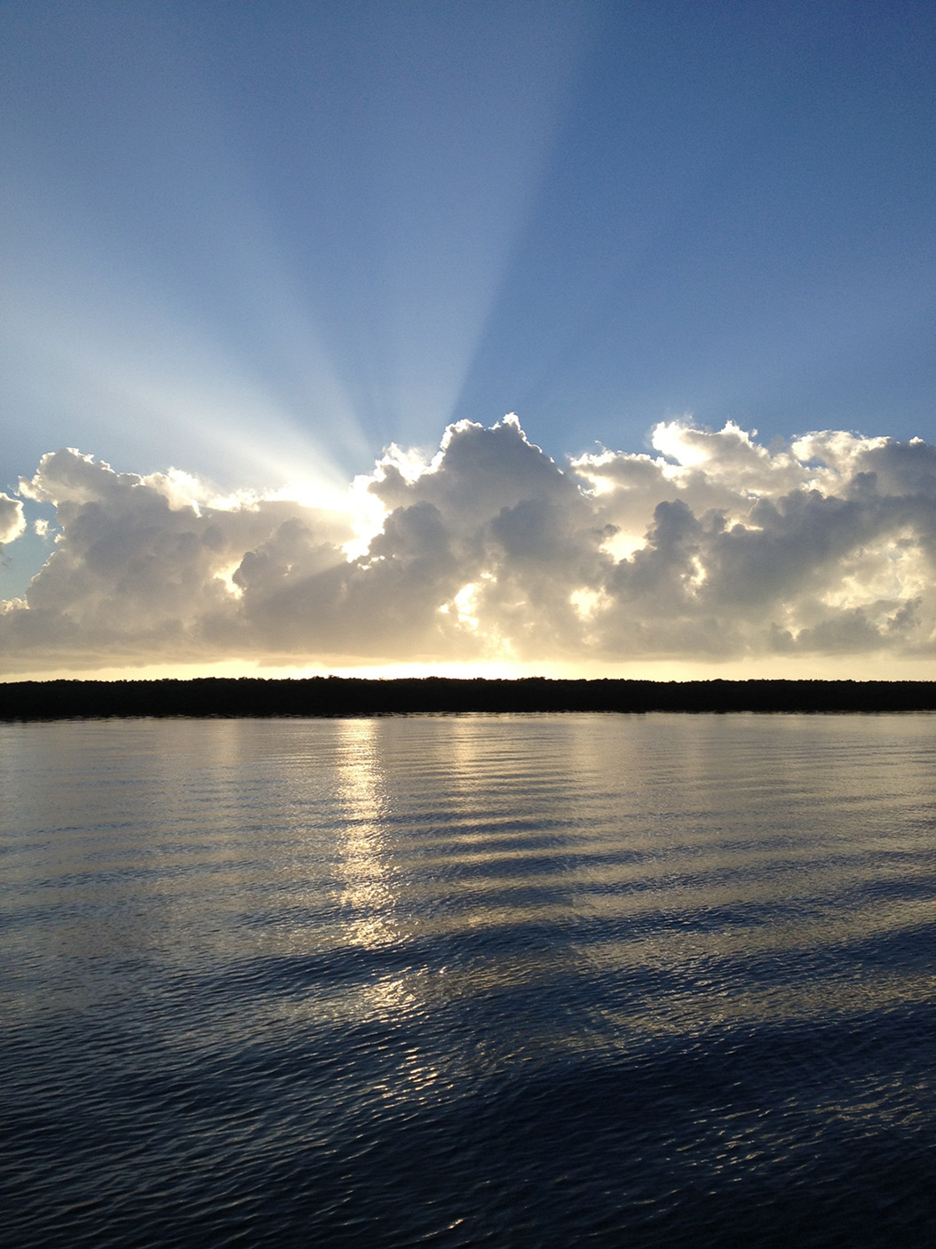 There are several people out in the mooring field who blow their conch shells every night as the sun drops below the horizon. Very cool.
