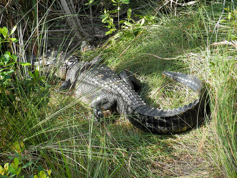 Evidently Crocs, which we have in Marathon (remember this from last year?) are okay with salt water, and alligators prefer fresh. So we have both here. This is one of the alligators that live in “The Blue Hole” (a fresh/salt water pond) on Big Pine Key. Unfortunately they’ve become accustomed to people, so they’re not very shy. Watch out!