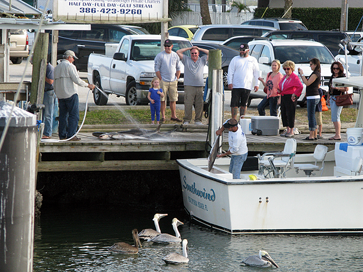 Some of the people in the marina go out to the reef and fish, but we see fish in the marina as well. The water is very clear on days when there is little wind. This is a Needle Fish that visited us one day, and there’s a young barracuda that comes for table scraps at slip B-1.